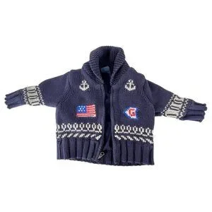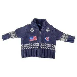 This BabyGap knit sweater jacket offers warmth and style for infants aged 3-6 months. Featuring a nautical design with anchors and flags, it provides a cozy fit, ideal for cooler weather. The zipper closure ensures ease of wear and removal, making it a practical choice for everyday use.