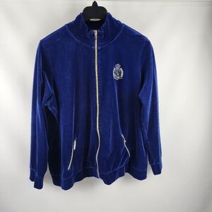 Lauren Ralph Lauren Jacket Womens Blue Plus 3X Monogram Crest Track Velour VTG