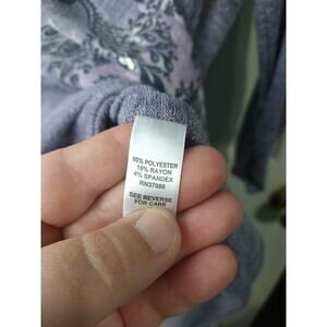 Est. 1946 Woman M Purple Peacock 3/4 Sleeve Pullover Tee Curved Hem