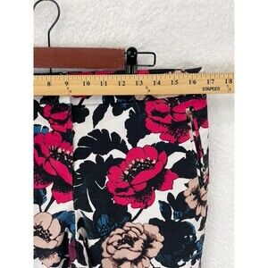 Adrianna Papell Women's Pants Size 12 Red White Floral Print Ankle Cropped