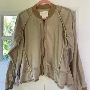 Anthropologie tan ruffled bomber jacket light sand XS