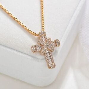 14k gold over sterling diamond cross necklace