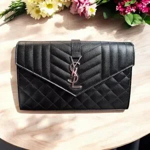 Product: YSL Triquilt Envelope Crossbody Grained Leather Wallet on Chain