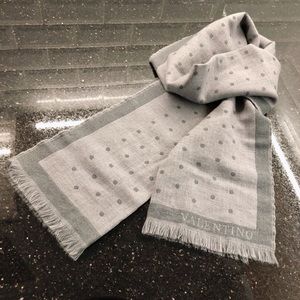 VALENTINO Polka Dot Grey Wool Scarf