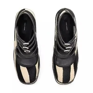 Marc Jacobs Kiki black tan zebra calf hair strappy chunky platform ankle boots