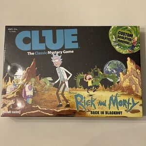 Clue the classic mystery game. Limited edition. Rick and Morty Back in Blackout edition.