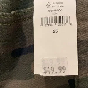Camo Gap stretch jeans, New W/ Tags, waist 25, true skinny ankle, 90% cotton