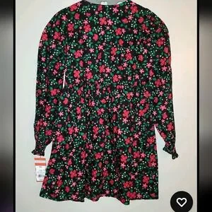 This black floral dress from Cat & Jack is perfect for any occasion, whether it be a party or a casual day out. The long balloon sleeves and round neckline with button closure give it a unique and stylish look. The dress also features pockets, making it both fashionable and functional.