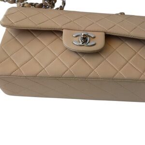 CHANEL Classic Double Flap Bag Small Vintage Beige Silver Hardware (repainted)