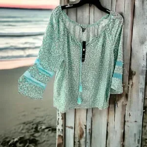 BOHO blouse in size L. perfect for summer or at the beach. Wide sleeves. Can ship same or next day!