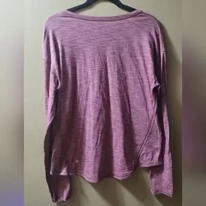 When it's time to get sweaty, this anti-stink long sleeve will be your go-to for runs and cardio classes. In GUC with minimal wear as seen in pics (slight imperfection or hole as seen in pic). Please see all pictures before purchasing. Heathered Deep Rouge. Size 12 based on comparisons of other listings with measurements.