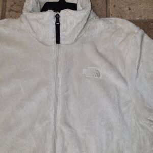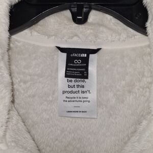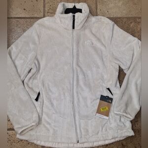 New with tags, The North Face "Osito" Jacket in Gardenia White. This jacket is super soft and fuzzy, with two zippered pockets in the front and two inside pouches. Embroidered logo on the front left chest and back right shoulder. This would make a great gift! Ladies size XL. Pit to pit measures 22". Retails for $100.