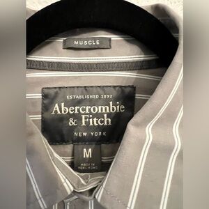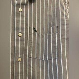 Abercrombie & Fitch mens muscle button down gray stripped medium