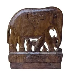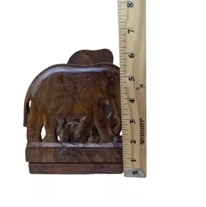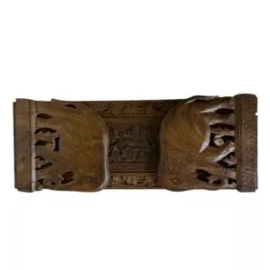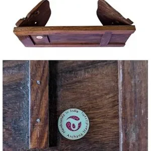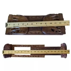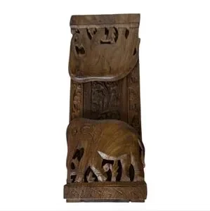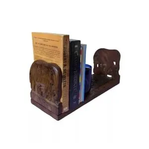 This vintage bookrack that is expandable and foldable is a beautiful addition to any collection. Handmade in India by Archana Handicrafts, it features intricate carvings of elephants, flowers, and geometric patterns.