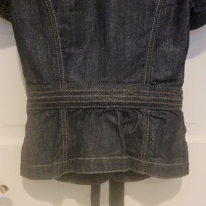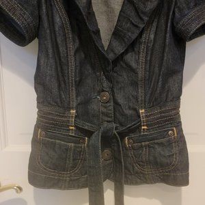 This is a very feminine denim indigo blue jacket that will accentuate your curves and waistline.