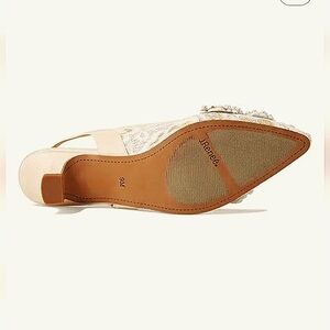 New w/Box J Renee Strovanni Lace Beaded/Faux Pearl Kitten Heel Slingback Pumps. Size 9.5.