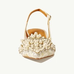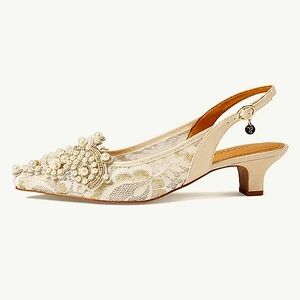 New w/Box J. Renee Strovanni Lace & Beaded Faux Pearl Kitten Heel Slingback Pump