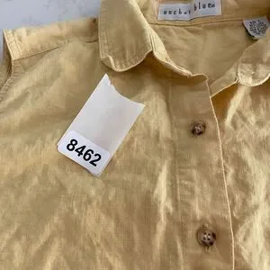 Anchor Blue Shirt Top Women's Large Yellow Sleeveless Linen Classic Button-Up.