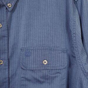 Timberland Mens Size XL Shirt Button Down Collar Herringbone Shadow Fabric Logo