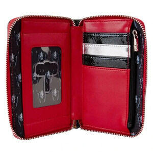 NWT Loungefly Marvel Metallic Thor Cosplay Zip Around Wallet. "Another!" The strongest Avenger is making a grand entrance as the Loungefly Marvel Metallic Thor Cosplay Zip Around Wallet. On the front, shiny metallic and iridescent details make up the details of Thor's armor. On the back, glitter details appear above Thor's name. Open the wallet to reveal four slots for holding cards and a clear slot for ID, which features a die-cut window of Mjolnir. Whether you're joining forces on Earth or traveling the Bifrost, this accessory will keep your belongings safe at hand. The Loungefly Marvel Metallic Thor Cosplay Zip Around Wallet is made of vegan leather (polyurethane). Wallet zips closed with shiny silver hardware. Additional features include applique, debossed, glitter, and printed details. Take note of the coordinating inside lining.