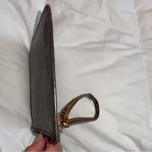 LV Cherry Neverfull Pochette. Strap shows patina and wear. Hardware has been scratched. Interior has some dust/powder but is otherwise clean. Pochette has been used a decent amount, but has lots of life left in it.