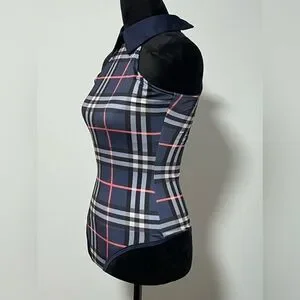 Women's D'ENCANTO Sleeveless Collared Plaid Bodysuit