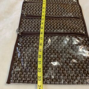HENRI BENDEL brown white striped hanging 4 pockets travel toiletries bag VVGUC+