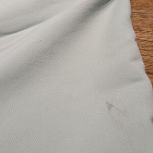 Light Green Mens Under Armour 10" Inseam - 20" long top to bottom. Very comfortable. Two small stains shown in pictures. The light stain is front left. The slightly darker stain is back right near the bottom.