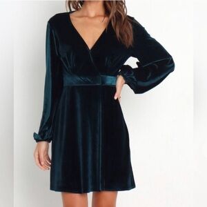 Petal & Pup green velvet v-neck long sleeve wrap dress