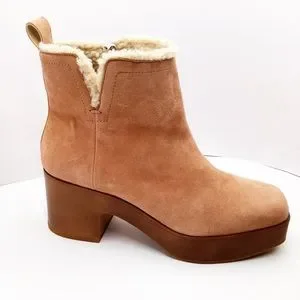A cold-weather take on the cozy clog, this bootie is styled with a cool 70s vibe. The Rafella is designed with a trend-right square toe, notched topline, wood-look platform and sumptuous faux shearling lining that keeps your feet toasty. Style yours with a cable-knit pullover and maxi skirt.