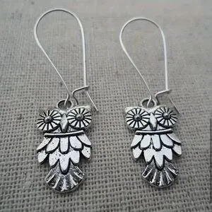 Support your host Silver Owl Drop Antiqued Dangle Boho Chic Earrings Jewelry