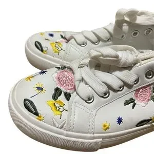 White embroidered floral sneakers with lace up design. Size US Women's 7.5 = EU 38. Worn once. No signs of wearing. Offers accepted #floralshoes #cute #whitesneakers