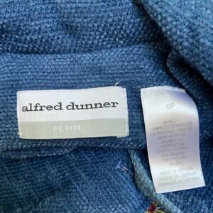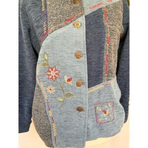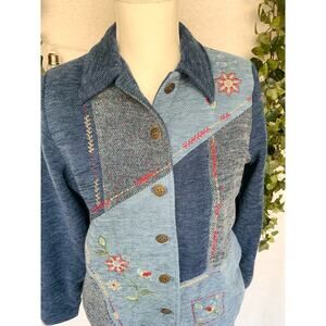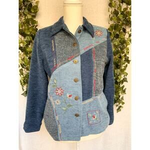 Vintage Alfred Dunner Blue Tweed Patchwork Floral Embroidery Button Up Jacket