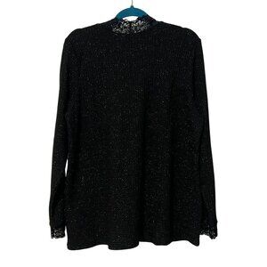 Logo Lori Goldstein Womens Lace Trim Sweater Top L Black Recycled Polyester