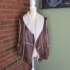 Leather look, faux fur vest super cute SZ M EUC. A-25. A2509
