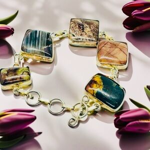 This elegant bracelet features a stunning array of multicolor stones, perfect for adding a touch of sophistication to any outfit.