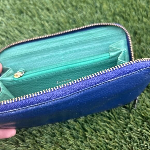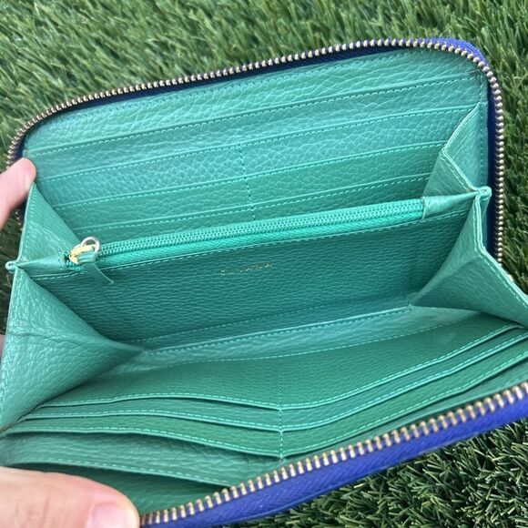Cuyana Classic Zip Pebbled Leather Wallet Blue Green