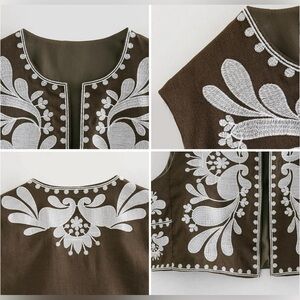 New Embroidered Vest Boho Open Front cropped Vest top Sleeveless Floral Cardigan