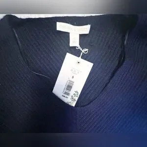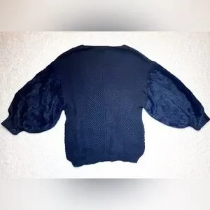 Chelsea & Violet NWT Small V-Neck Fuzzy Balloon Sleeve Knit Navy Sweater