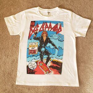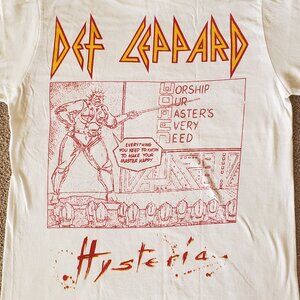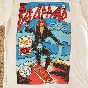 Def Leppard Hysteria comic with double-sided graphic after the original 80s tour tee (I'm certain it's a more recent reprint from the 2010s, when I got the item). Men's/Unisex size SMALL. It's very soft, 100% cotton! Great 80s/90s style piece!