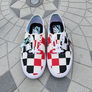 NWT: "Comfycush" black/red contrast checkered canvas SK8 sneakers with lace up construction / low top / logo emblems by Vans Off The Wall.