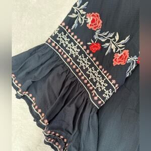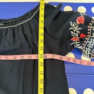 Max Edition Dress Women's Small Navy Floral Embroidered 3/4 Flutter sleeve