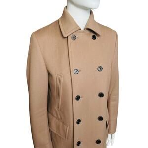 BOSS Hugo Boss Tailored T Cawel Wool Blend Coat Size US 40R Tan Pea Coat