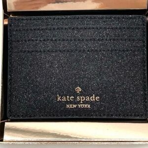 Kate Spade NY Small Slim Card Holder Lola Glitter Black (001) NEW Tags