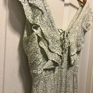Lulus floral long prairie style dress cream & sage ruffles lined Size M