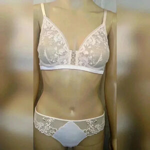 NWOT Simone Perele Orphee Sheer Plunge Bra and Panty Set 34B/1 Petal Power