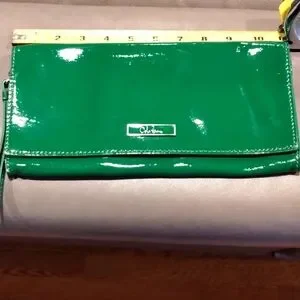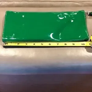 Cole Haan Leather Green Wristlet Wallet Patent Leather Clutch - X Large- GUC