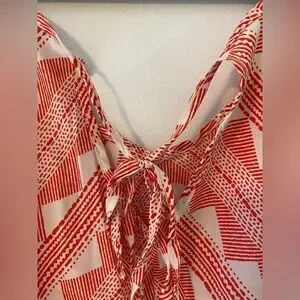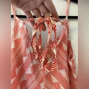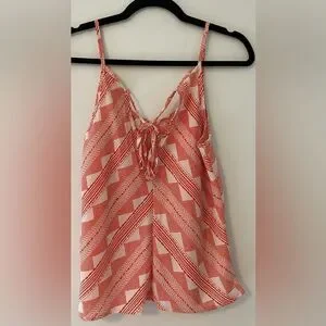 Boho Tank Top, Orange and White Geometric Pattern with Tie Accent on Upper Back, Charlotte Russe, Size M, Like New Condition