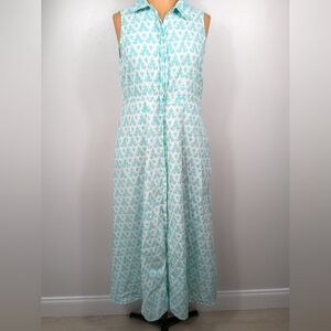 Livro Maxi Dress Womens Size Small Aqua White Boho Collared Button Front
