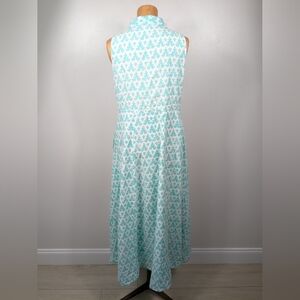 Livro Maxi Dress Womens Size Small Aqua White Boho Collared Button Front. I believe this dress is 100% cotton but care/materials tag is missing. Pre-owned in excellent condition (has a very minor scuff mark - see pictures).